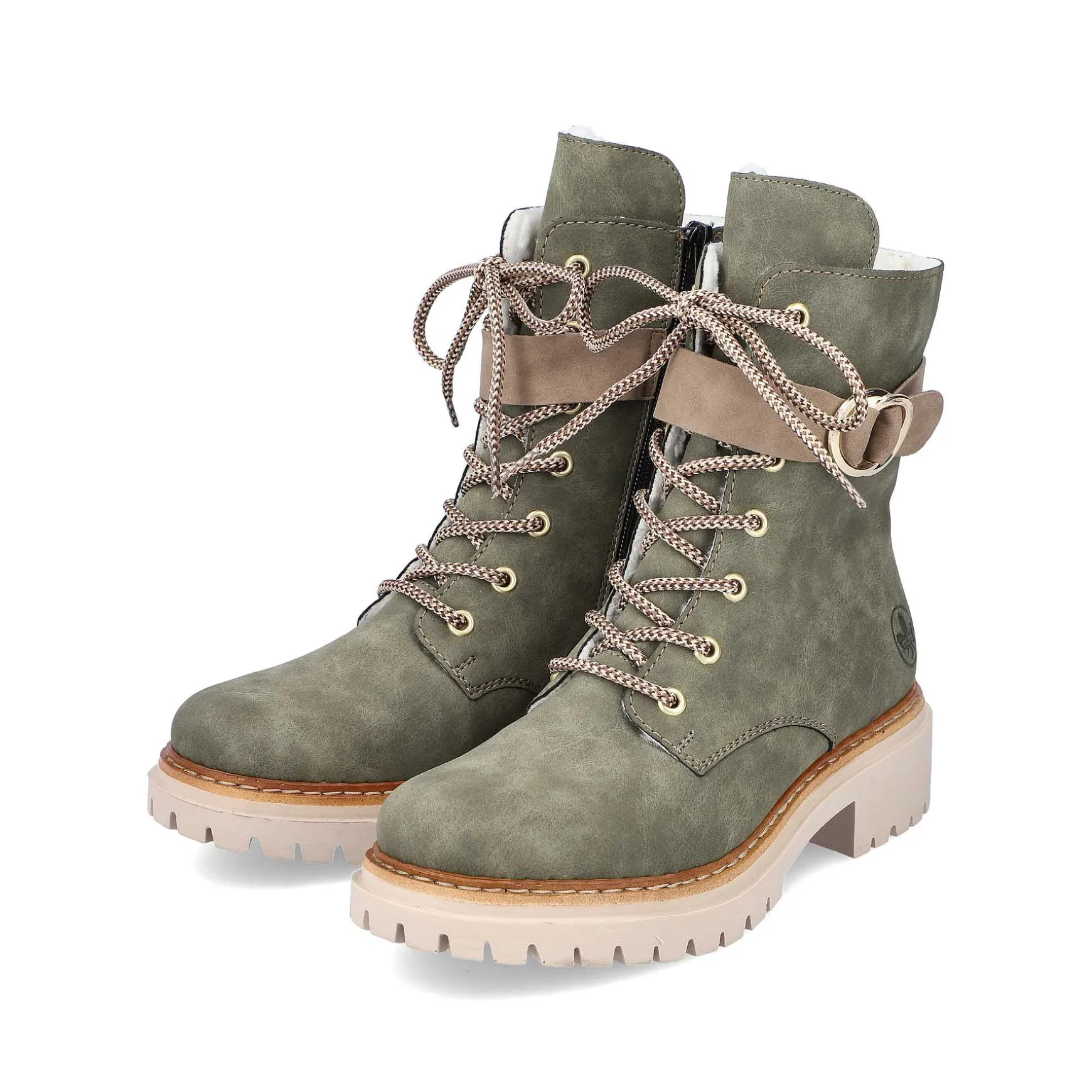 Dream Team – Stil Og Komfort! Den Kolde Årstid Ville Ikke Være Halvt Så Sjov Uden Disse Stilfulde Bladgrønne Bikerstøvler Fra Rieker. Trods Snøringen Kan Skoen Nemt Lukkes Med Lynlås. Det Dekorative Gyldne Spænde På Siden Giver Skoen Noget Bestemt. Med Den Stødabsorberende Og Lette Sål Vil Dine Fødder Blive Forkælet Med Hvert Skridt, Og Den Ekstra Bløde Indersål Er Endnu Et Plus. Til Alle Damer Med Str. 43 Findes Disse Bikerstøvler Også I Oversizes. Hyggeligt Varmt Foer Holder Med Garanti Dine Fødder Gode Og Varme Hele Dagen Lang. 100% Favorit Sko Potentiale!