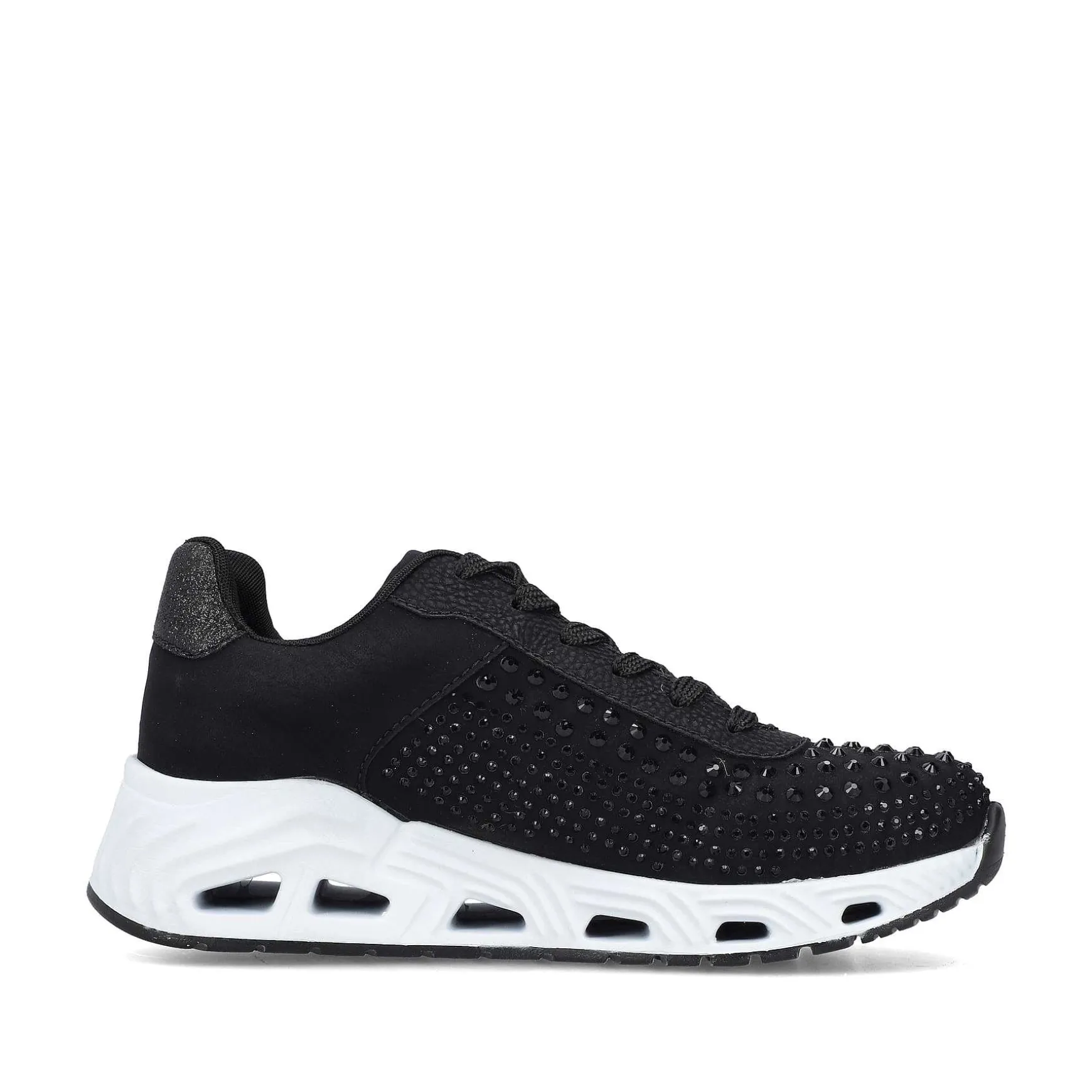 Disse Afslappede Sport & Style Rieker Sneakers Til Kvinder I Sort Er Lavet Af Højkvalitets Imiteret Læder. Komfortbredden Garanterer En Perfekt Pasform. Den Ultralette, Fleksible Eva-Ydersål Sikrer Hurtighed Og Smidighed. Den Udtagelige Indersål Er Polstret Og Dæmper Perfekt Hvert Skridt.