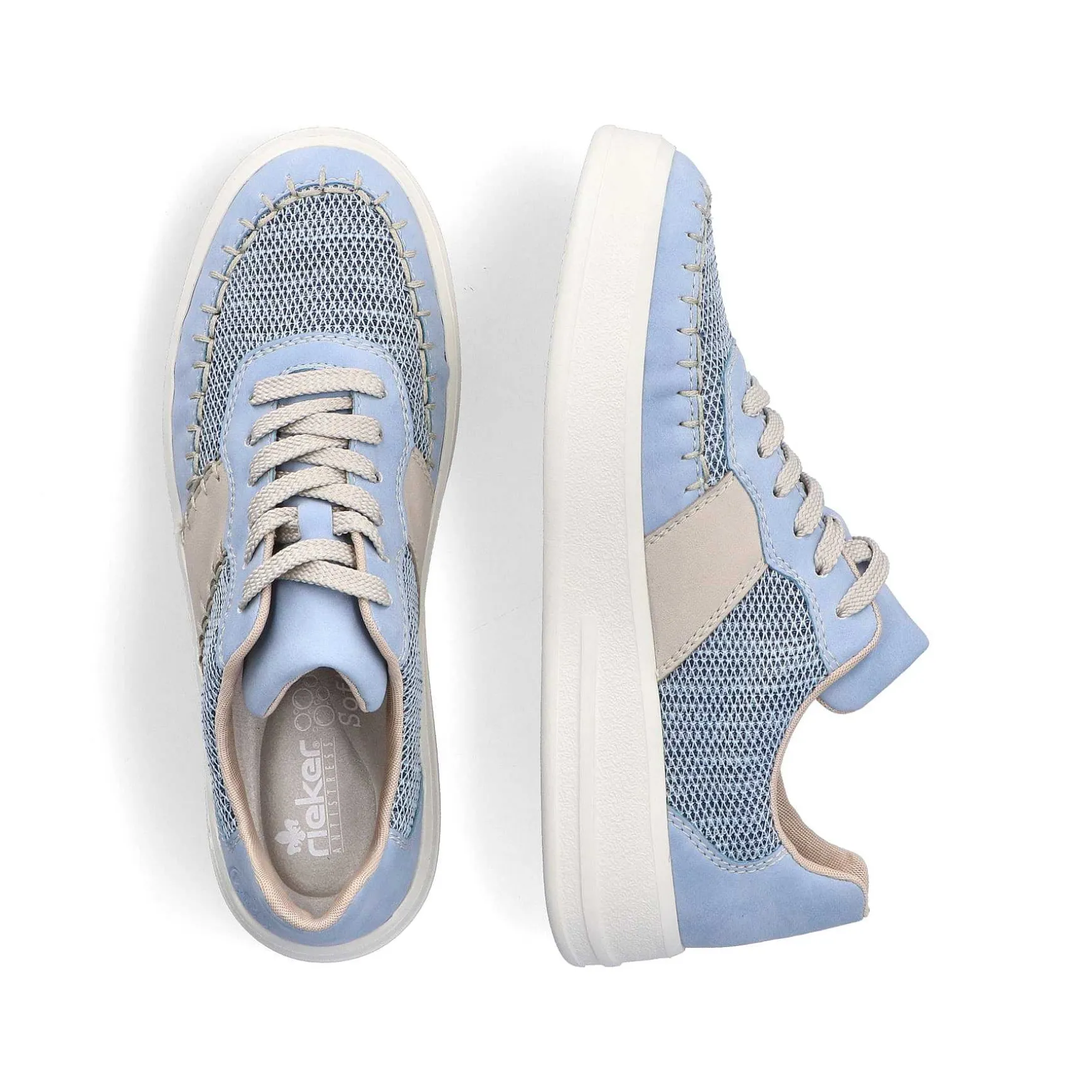 Moderigtigt Must-Have! Med Disse Lyseblå Rieker Sneakers Lave Til Kvinder Er Du Cool Og Afslappet På Farten. Den Grå Snøring Sikrer, At Skoen Altid Sidder Perfekt. Mesh-Designet Er En Fin Detalje. Den Fleksible Og Ultralette Sål Sikrer En Behagelig Pasform. Sneakersene Har En Polstret Og Udtagelig Indersål, Der Er Som En Ferie For Dine Fødder! Simpelthen Fantastisk!