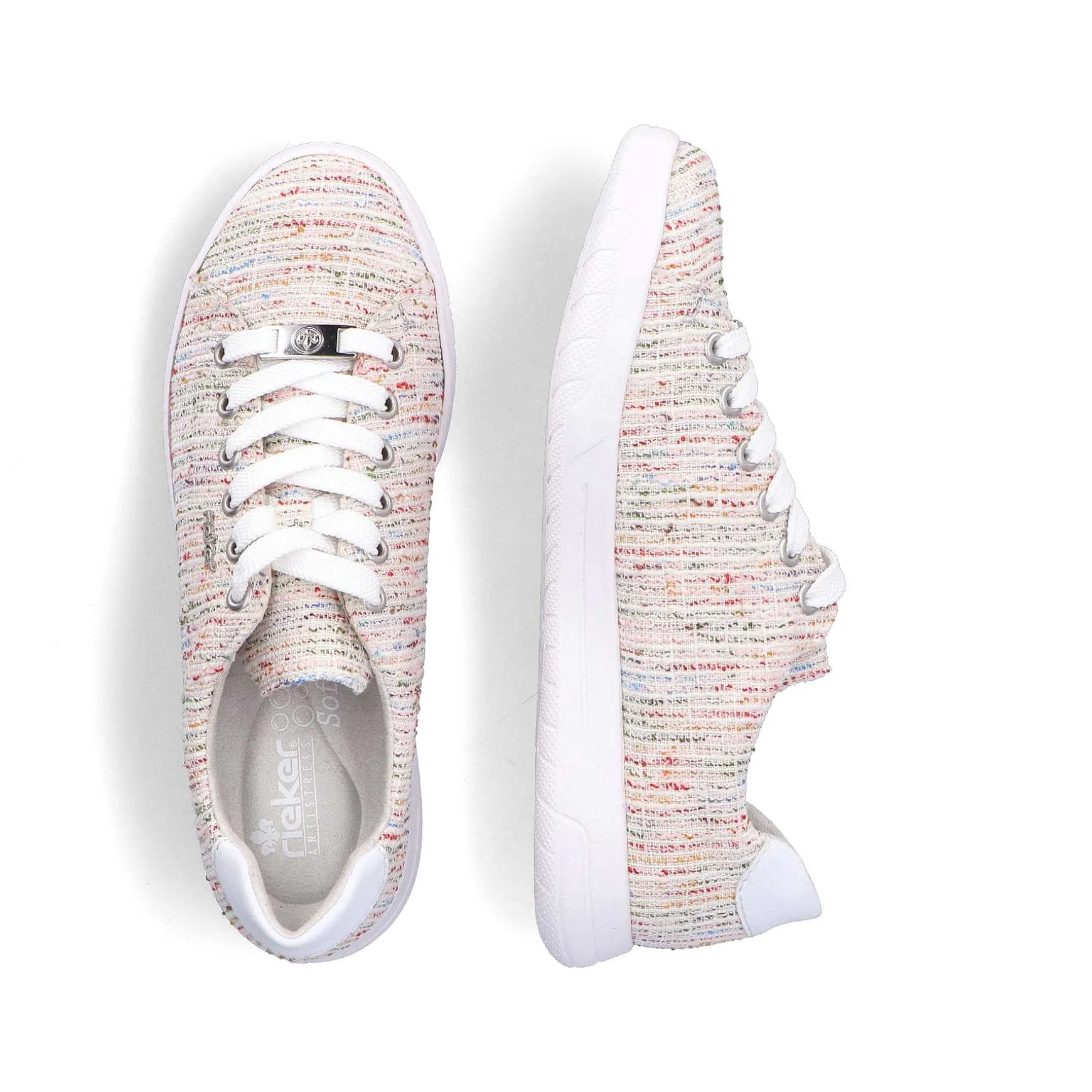 Stilfuld, Behagelig Og Vegansk! Med Disse Farverige Rieker Lave Sneakers Til Hverdagsbrug Til Kvinder Er Du På Farten Med Maksimal Komfort Og Ultimativ Stil. Derudover Sikrer Den Hvide Snøring, At Skoen Hele Tiden Sidder Godt. Det Flerfarvede Mønster Er Et Rigtigt Blikfang. Med Den Ultralette Og Fleksible Sål Nyder Dine Fødder Den Bedste Gåkomfort Ved Hvert Skridt. Den Polstrede Og Udtagelige Indersål Giver Komfort Og Funktionalitet Til Hver Dag. God Fornemmelse For Dine Fødder – Med Rieker!