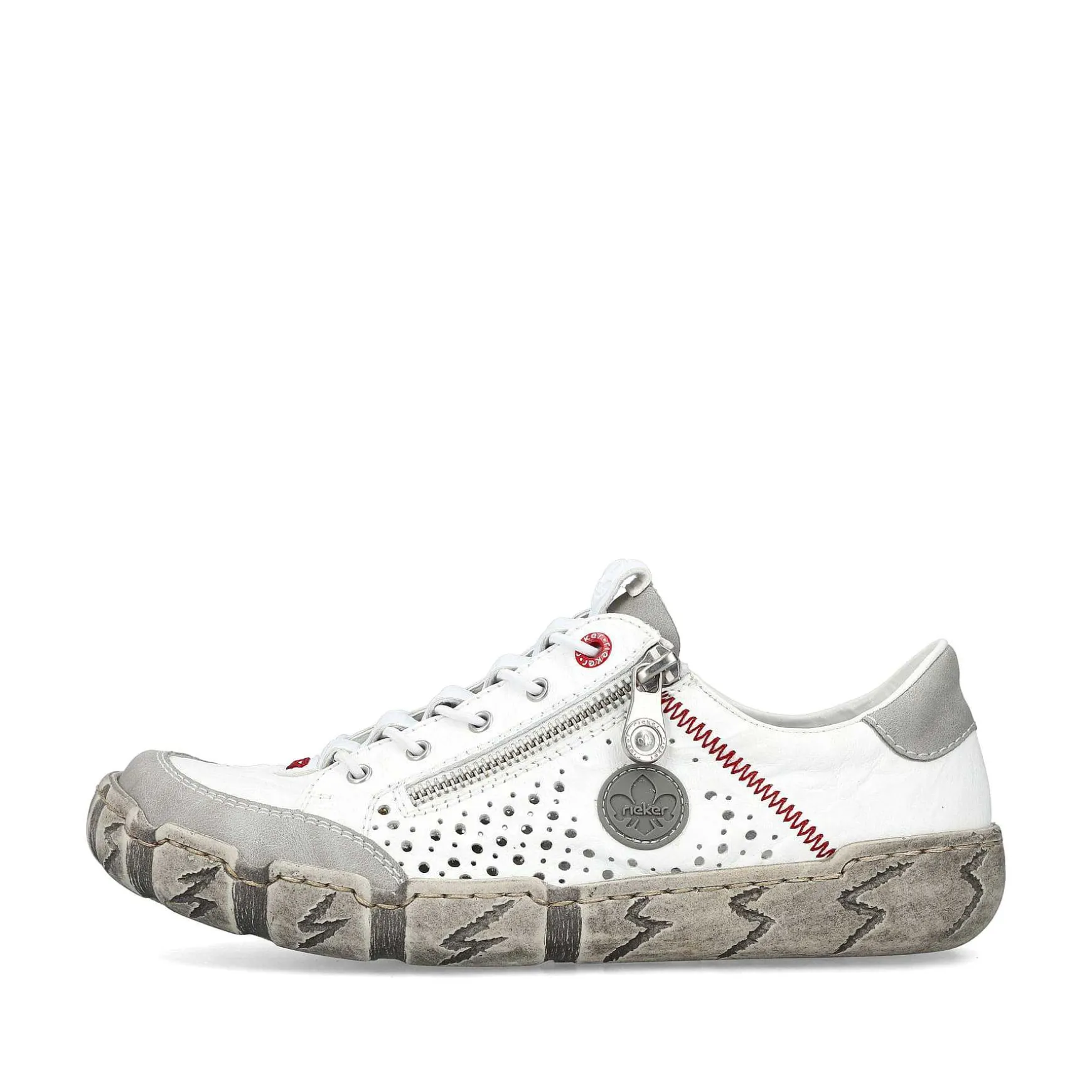 Vi Elsker Hvid! Med Disse Ren Hvide Rieker Hjemmesko Til Kvinder Lavet Af Glat Læder Er Du Cool Og Afslappet På Farten. Den Smarte Kombination Af Lynlås Og Snøring Giver Optimal Støtte Og Giver Dig Mulighed For Hurtigt At Tage Den Af Og På. Den Gennembrudte Stil Giver Skoen Noget Bestemt. Sålen Er Både Let Og Stødabsorberende Og Giver En Dobbelt Følelse Af Komfort Ved Hvert Skridt. Et Andet Plus Er Den Ekstra Bløde Indersål. Mere Er Ikke Muligt!