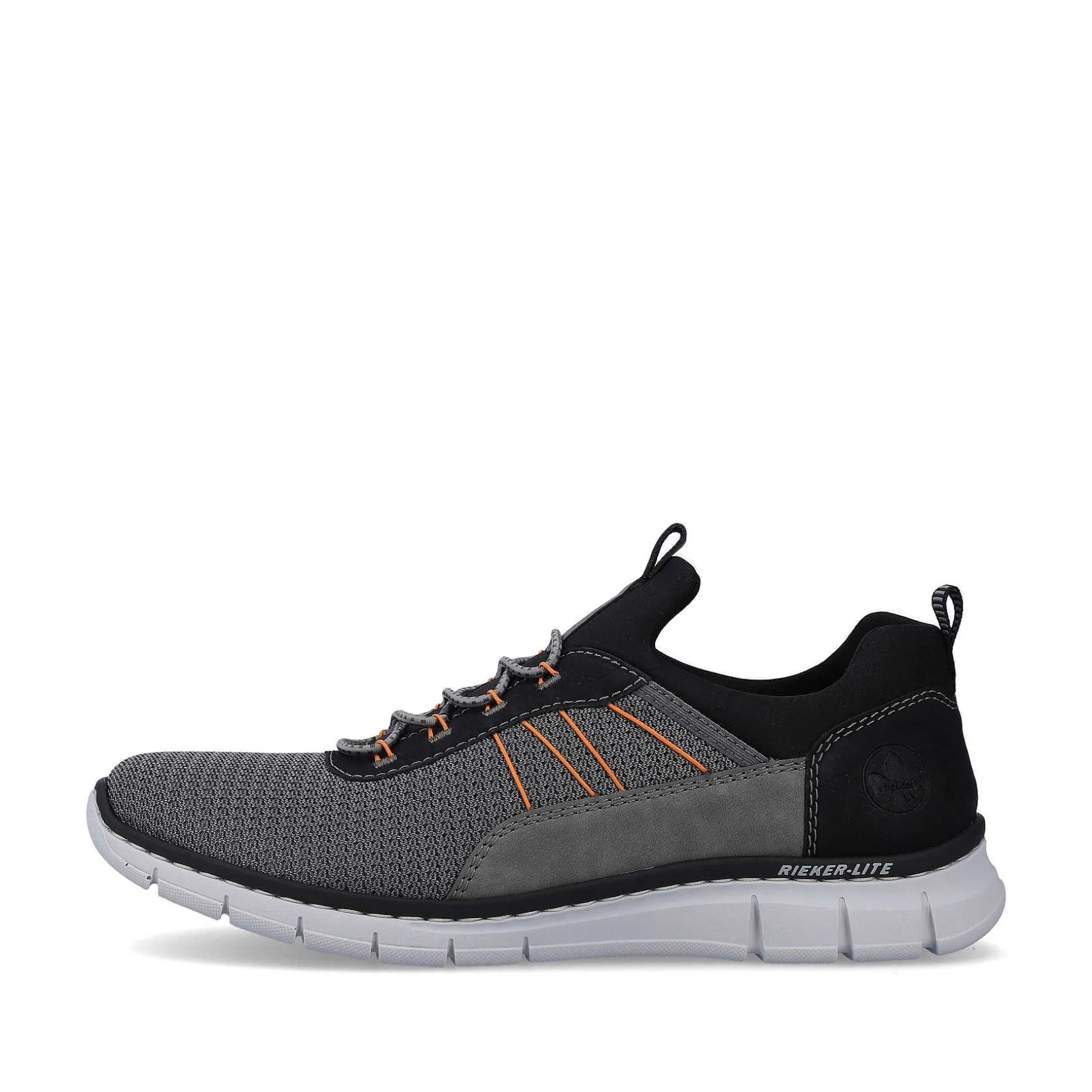 Slip På Og Afsted! De Antracitfarvede Rieker Hjemmesko Til Mænd Er Ikke Kun Et Rigtigt Blikfang, Men Også Utrolig Behagelige Til Hverdagsbrug. Takket Være Gummisnøringen Er Besværet Med At Binde Sko Ikke Længere Et Problem Og Gør Dem Særligt Nemme At Tage På Og Af. De Orange Dekorative Sømme Er Stilfulde Blikfang. Med Den Stødabsorberende Og Lette Sål Nyder Dine Fødder Den Bedste Gåkomfort Ved Hvert Skridt. Et Andet Plus Er Den Ekstra Bløde Indersål. Komfortbredden G 1/2 Giver Dig Mere Frihed I Skoen. Bare Slip På Og Gå!