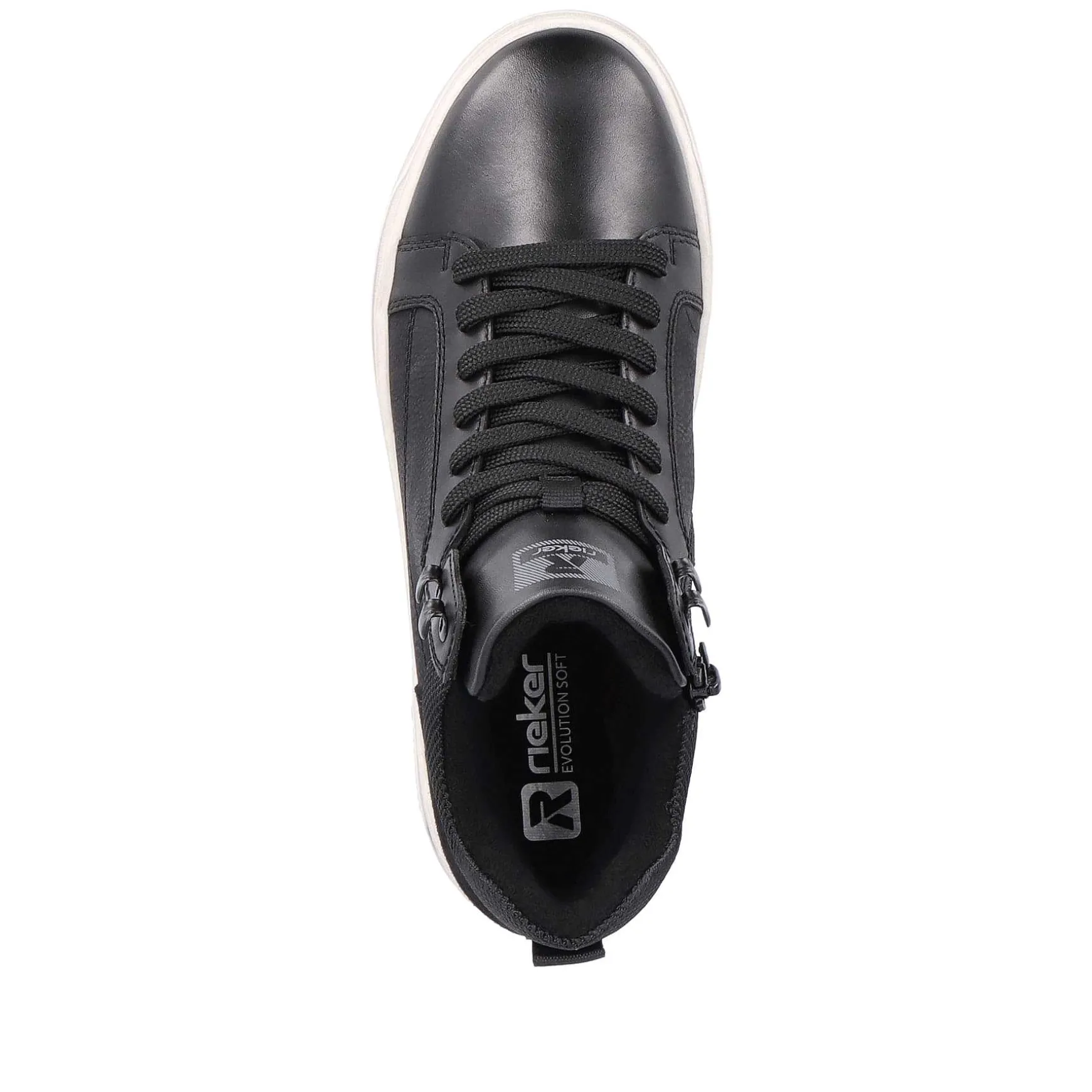 Disse Sport & Style Rieker Sneaker High Til Mænd I Sort Er Udstyret Med En Vand- Og Smudsafvisende Højteknologisk Nanobelægning. De Er Lavet Af Glat Læder Af Høj Kvalitet Og Kan Hurtigt Og Nemt Tages På Med Lynlås. Den Lyse Tr-Sål Giver Perfekt Støtte, Og Den Udtagelige Bløde Indersål Giver Dæmpning. Plus: Perfekt Pasform Takket Være Komfortbredden!