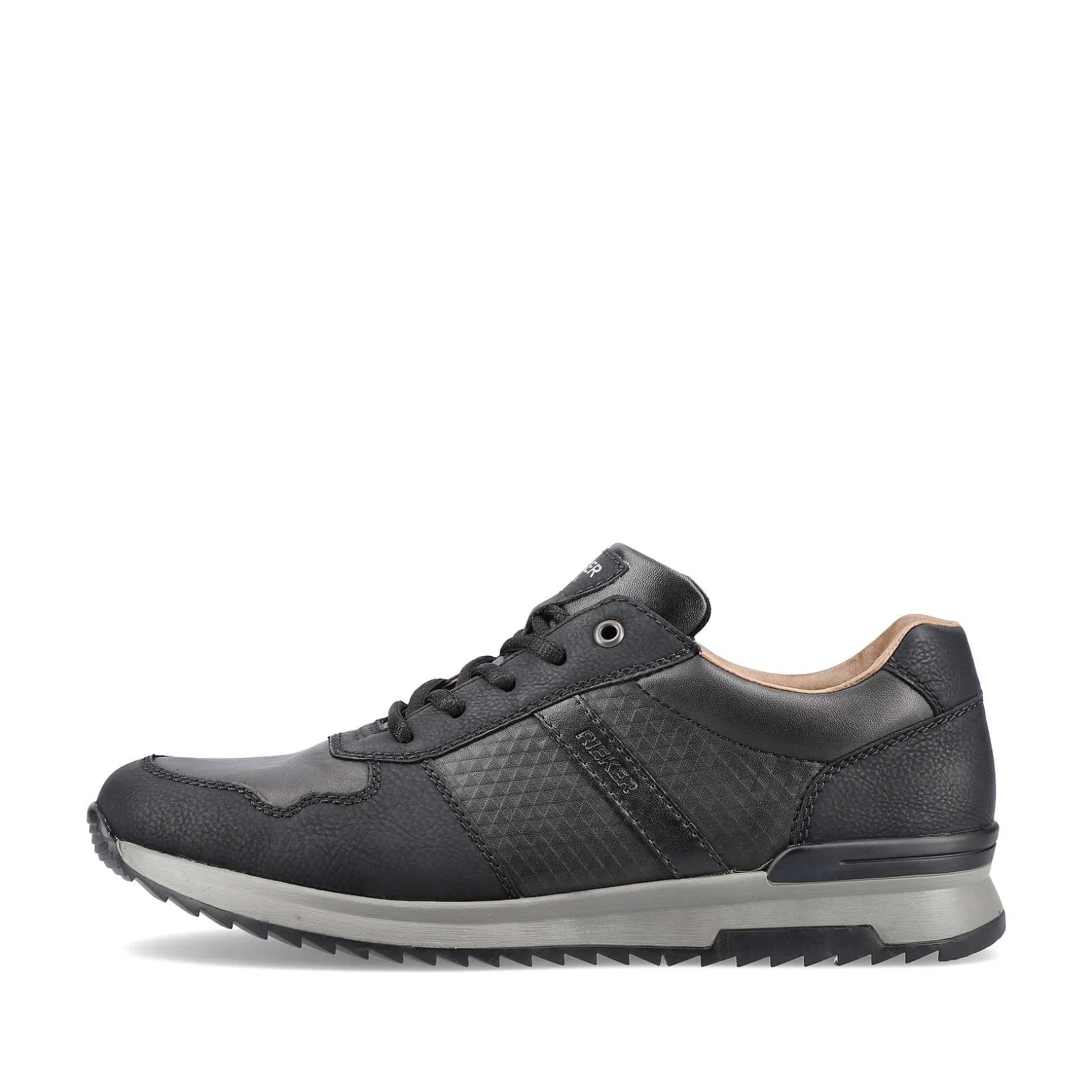 Helt Sort Alt! Disse Seje, Monokrome, Sorte Rieker Sneakers Lave Til Mænd Tilbyder Utallige Kombinationsmuligheder. Det Markante Og Maskuline Design Er Understreget Med Designelementer I Et Krokodille-Look. Sålen Er Let Og Fleksibel Og Garanterer Varig Komfort.