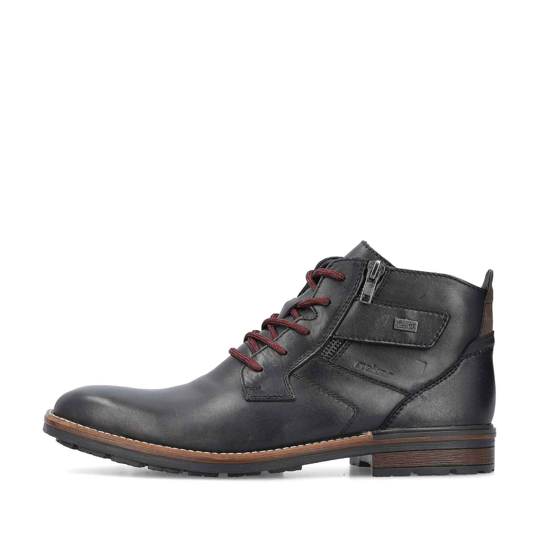 De Følger Dig Hele Vejen! Hold Dig Kølig Og Afslappet På Farten Med Disse Blanke Sorte Snørestøvler Lavet Af Glat Læder. Den Smarte Kombination Af Snøre Og Lynlås Giver God Støtte Og Gør Den Nem At Tage Af Og På. Det Dekorative Bånd På Siden Sikrer Den Perfekte Finish Og Et Iøjnefaldende Look. Med Den Robuste Profilsål Er Fodsikker Gang En Selvfølge. Komfortbredden G 1/2 Giver Tæerne Mere Bevægelsesfrihed. Takket Være Riekertex-Teknologien Er Snørestøvlerne Vandafvisende Og Derfor Velegnede Til Alt Slags Vejr. Intet Står I Vejen For Lange Gåture!