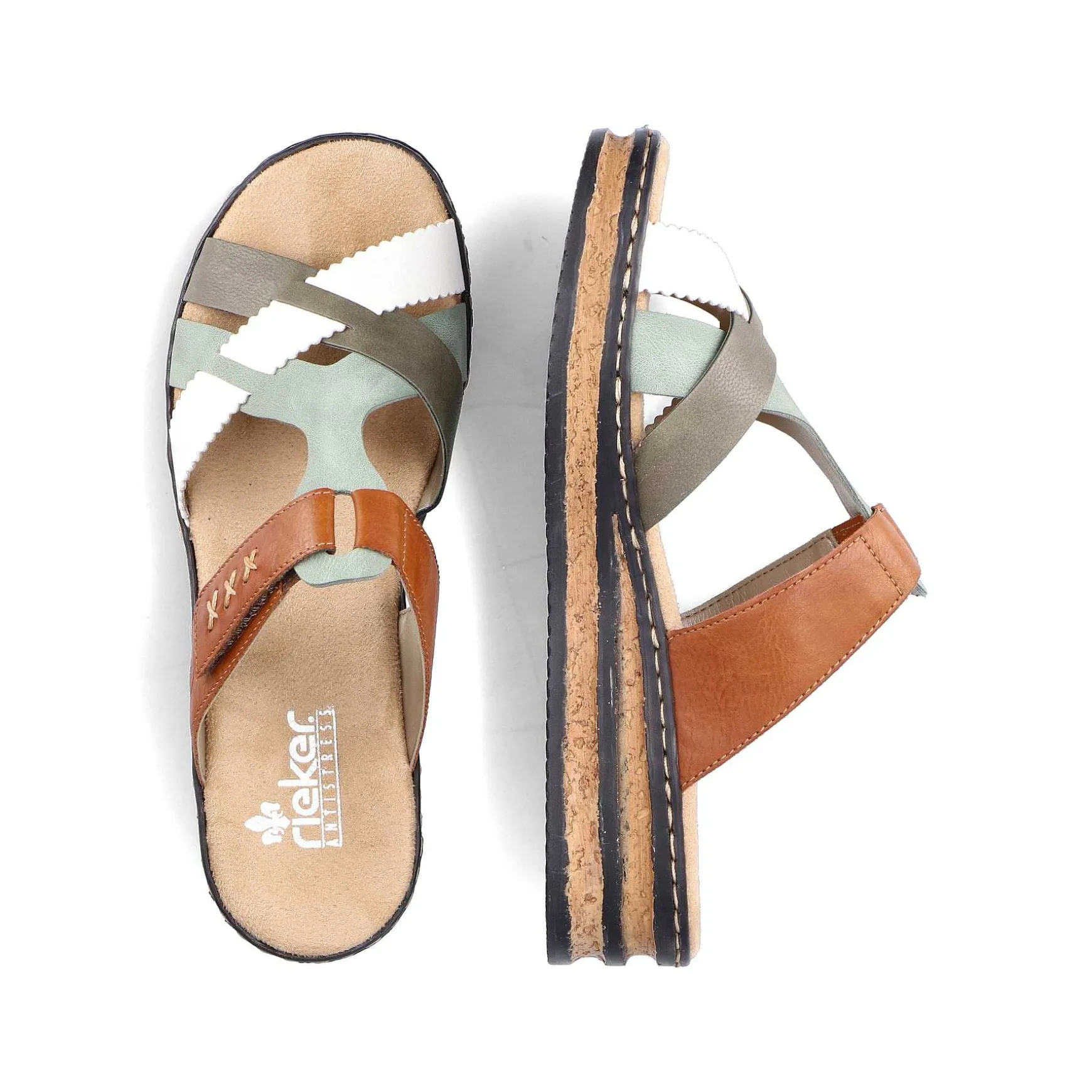 Rieker Kvinders Muldyr Chokolade Brun-Mint Gron-Hvid