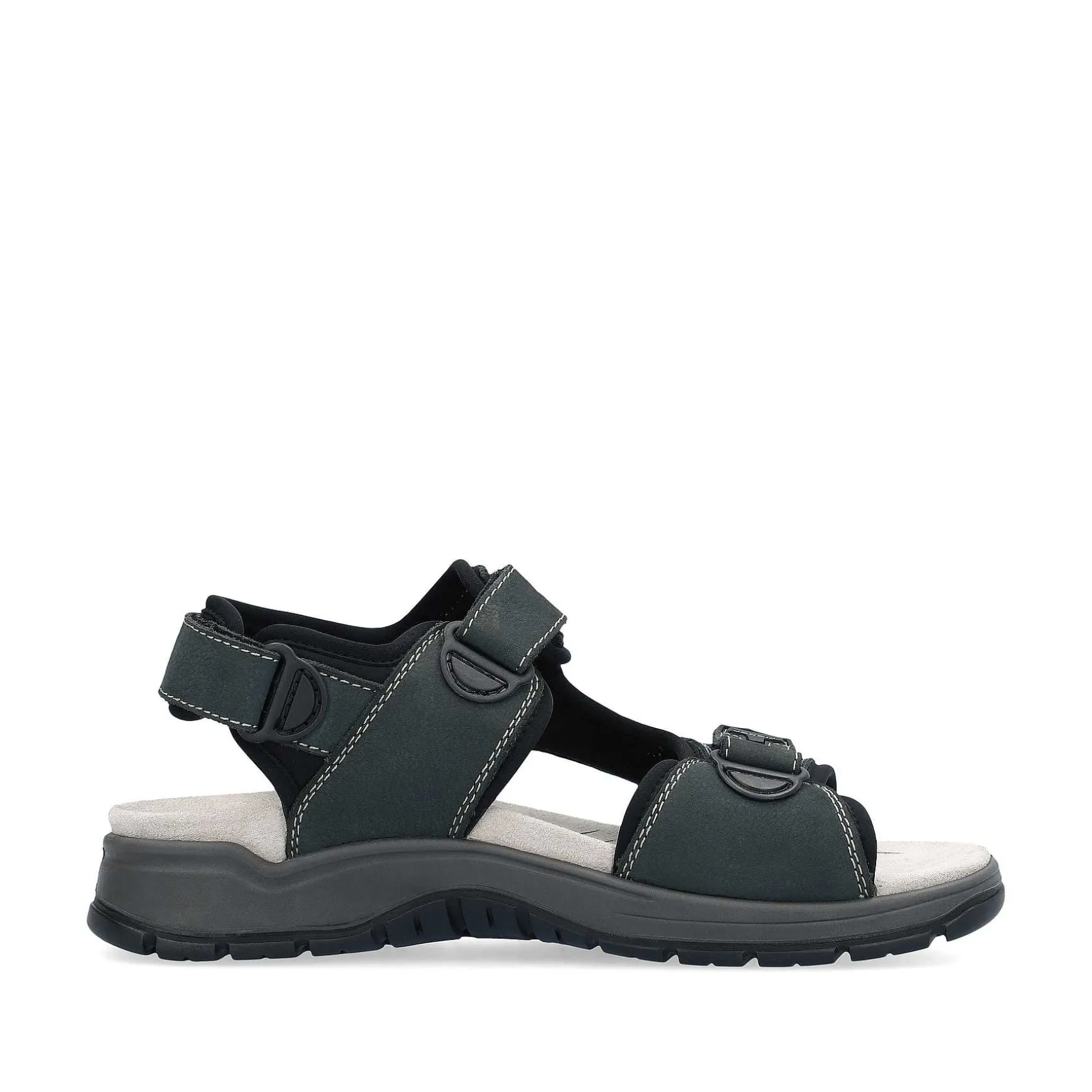 Mode Møder Funktion. Disse Blågrå Rieker Trekkingsandaler Til Mænd Lavet Af Glat Læder Garanterer En Himmelsk Følelse. Takket Være Stropper Og En Velcrolukning Tilpasser Skoen Sig Individuelt Til Foden. Den Brede Hælrem Giver Ekstra Støtte. Med Den Lette Og Stødabsorberende Sål Nyder Dine Fødder Den Bedste Gåkomfort Ved Hvert Skridt. Komfortbredden G Giver Dig Mere Frihed I Skoen. Intet Står I Vejen For Lange Gåture!